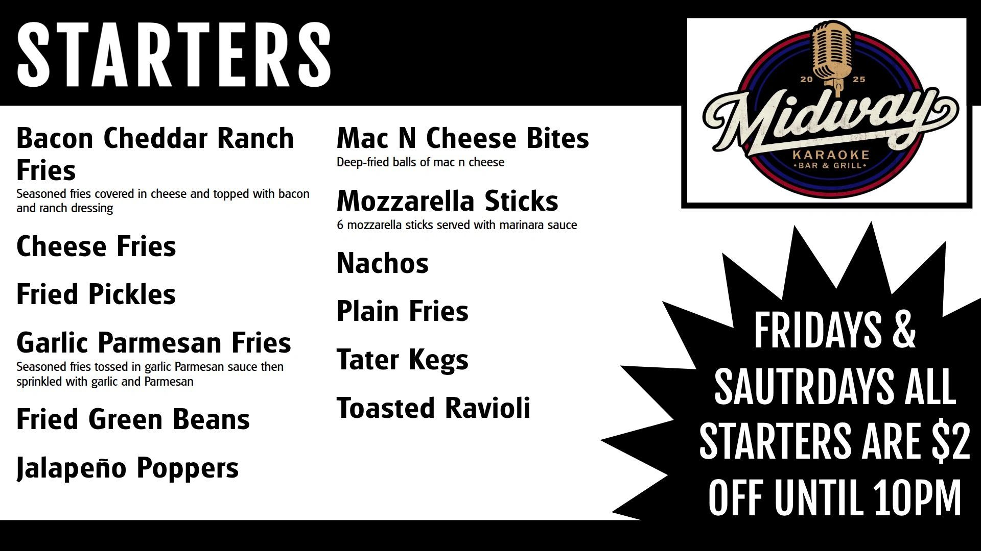Our kitchen is open Thursday - Saturday 6:45pm-1am! You can also find us on DoorDash and Ubereats! Come hungry, leave happy!
